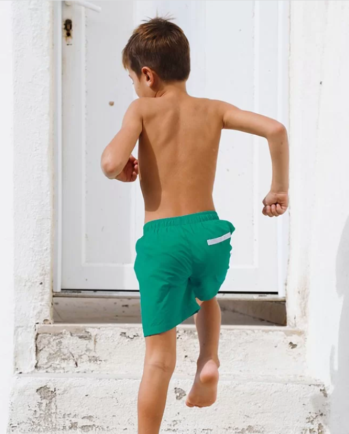 These swim shorts in Baleares green color have a slim European above the knee cut. The ruban on the waist and matching embroided logo give it that slick extra touch. They are soft as a peach and have fast drying superpowers. The elastic waistband makes them extra confortable for running or chilling out in the shade.