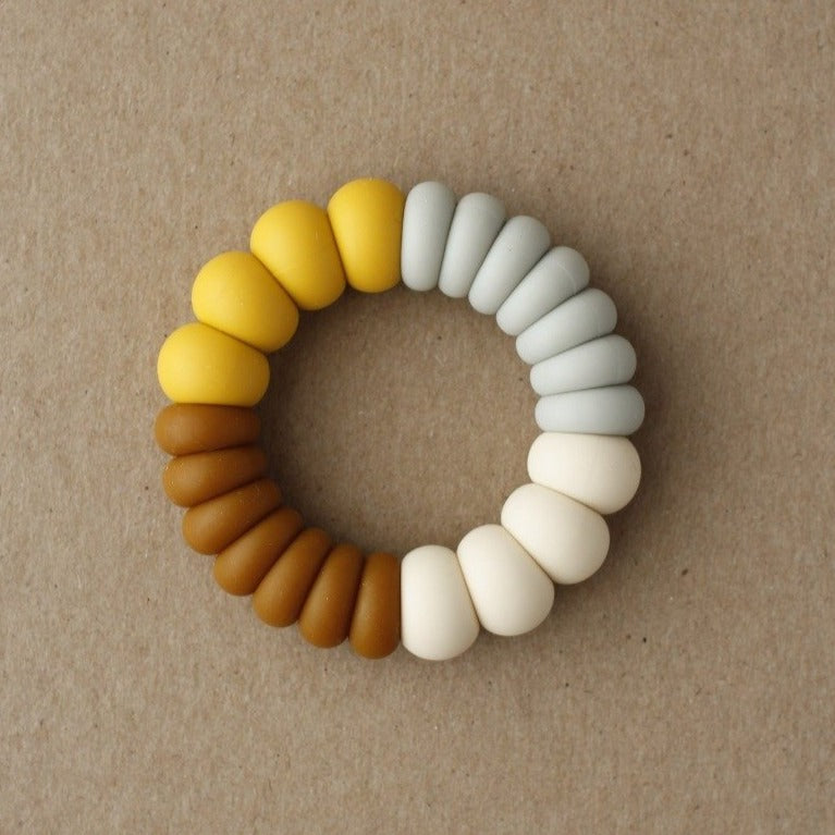Our gender neutral Simma teether is made from a soft silicone ring freezer toy that will help to soothe sore and itchy gums as much as it will entertain your baby. The simple design is easy for small hands to grab and hold, it is harmless and durable!