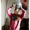 Gender neutral "Good Luck" sweatshirt from Little Man Happy. This adorable Sweatshirt is made from 100% Organic Cotton American fleece with a brushed back and features a print of a leaping cat in contrasting black.