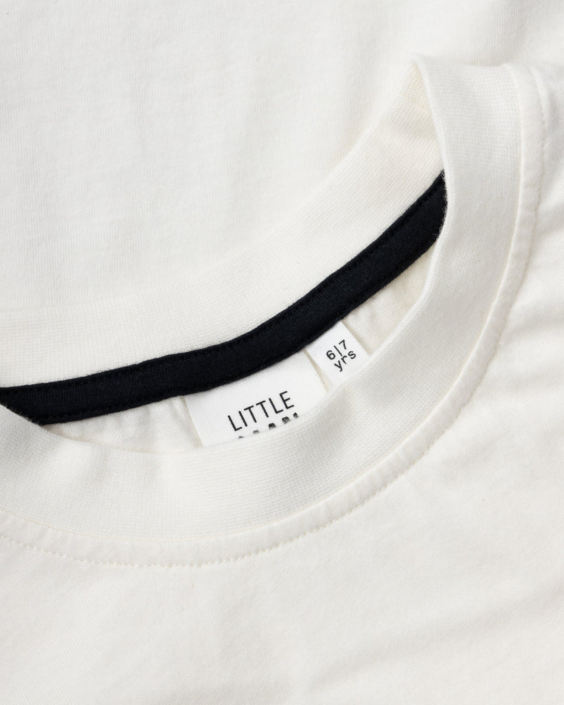 Gender neutral short sleeve kids t-shirt from Little Man Happy. This off white t-shirt is made from 100% organic cotton jersey with two ghosts printed on the upper left.