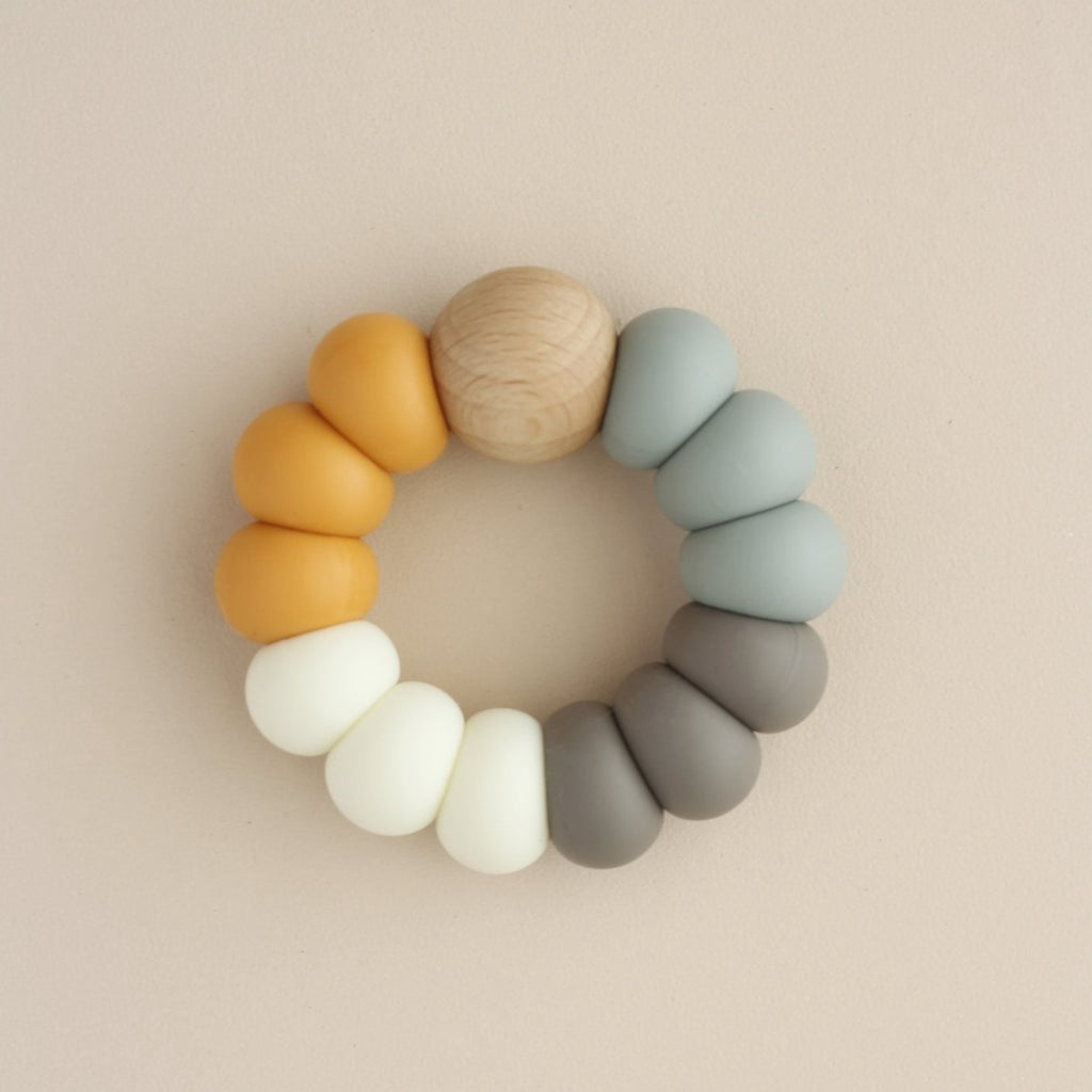 Our gender neutral Qizz ring teether is a mix of soft silicone and beechwood that have been treated with beeswax. Teether was designed with safety in mind witch will helps to soothe and comfort the baby's tender gums. The simple design is easy for small hands to grab, hold and explore!