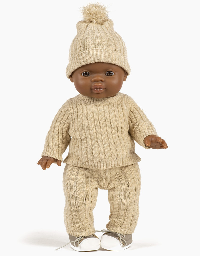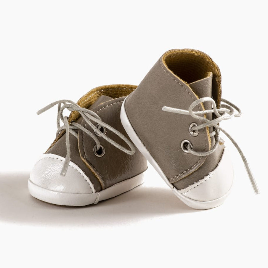 Komvers faux leather lace shoes in a gender neutral Taupe color for Minikane Gordis Fits 13" & 14.5" dolls (34cm + 37cm) dolls