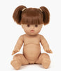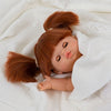 Sleepy Raphaelle has sweet features including brown eyes, cheeks, lips, and beautiful straight red hair styled in two pigtails with bangs. She has a sweet distinctive vanilla scent and is anatomically correct, with a posable head, arms, legs and eyes that close.