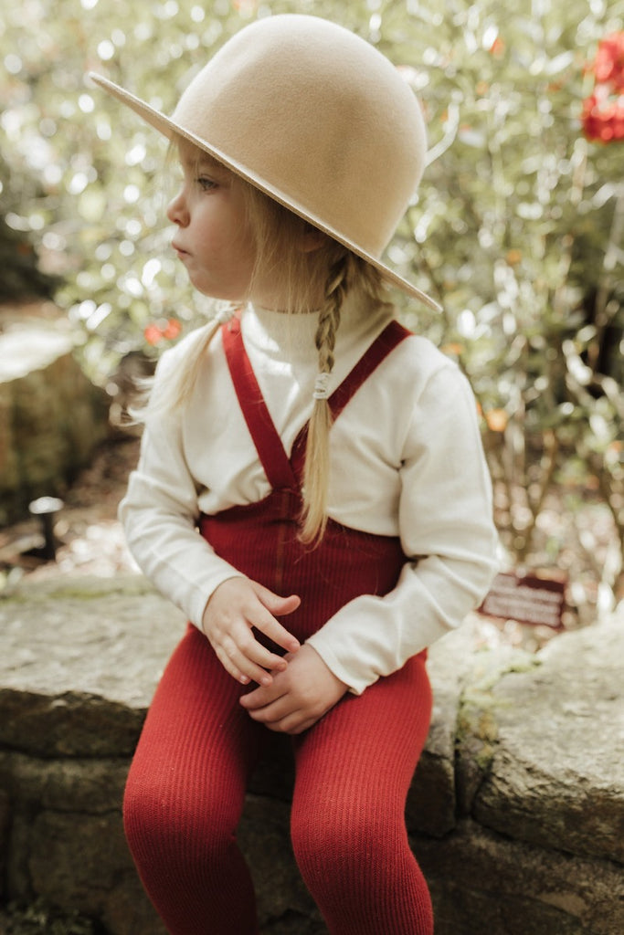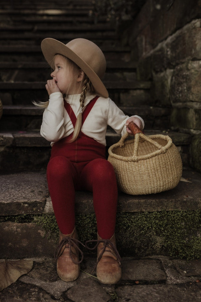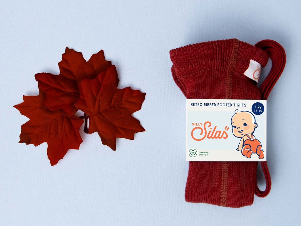 These retro ribbed footed tights in Maple Leaf, feature braces that will keep pace with even the most active babies and toddlers. Exceptionally resistant, lusciously soft and made from 100% cotton suitable also for babies with the most sensitive skin. Made with love in the heart of Europe, Czech Republic. Traditionally crafted by people who cherish their work for decades.