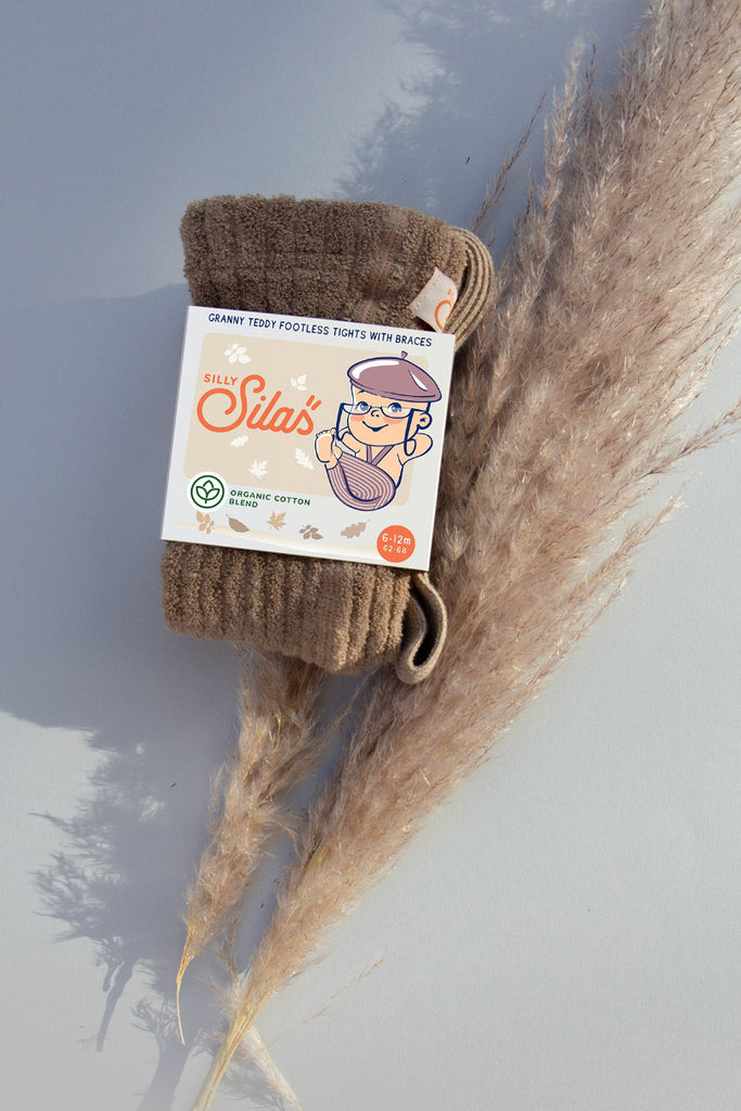 Silly Silas Peanut Blend Granny teddy tights with braces will keep your little ones comfy and cozy during winter adventures.  The granny teddy tights are a tribute to the nostalgia of vintage fashion that once adorned our grandparents’ closets and the vibrant childhood memories we cherished with them.