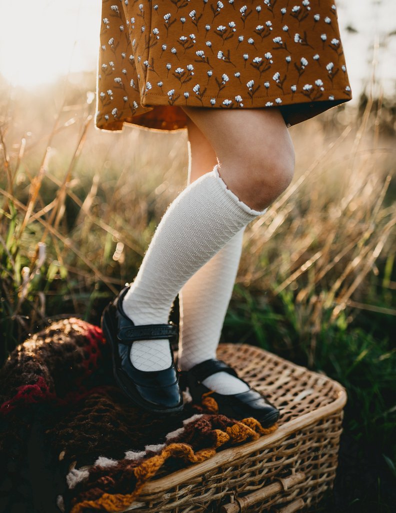 These lovely vintage style knee-high socks are both pretty and comfy, perfect for the outdoors, for a nature-inspired outfit and loads of fun outdoors.