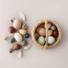The eggs are based on common farm eggs such as chicken, turkey, duck, goose, quail as well as a few inspired by other wild bird eggs.