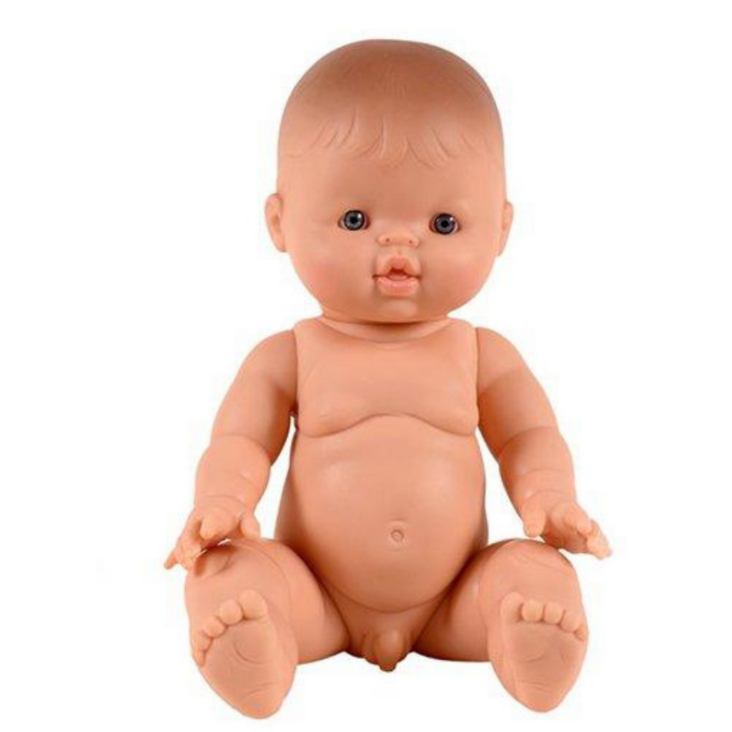 This beautiful baby European boy doll named Lino has sweet features including blue eyes, cheeks and lips. He has a sweet distinctive vanilla scent and is anatomically correct, with a posable head, arms and legs.