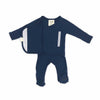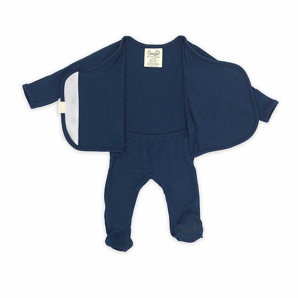 Full coverage footed onesie in a beautiful Midnight Blue. Designed with hook & loop fastener for ease of skin to skin contact. Elastic waist allows snap free diaper changes.