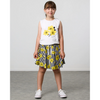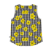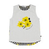 Cotton / spandex tank in white with yellow placement print on chest & floral printed gingham reverse. Guaranteed to bring sunshine vibes whatever the weather.