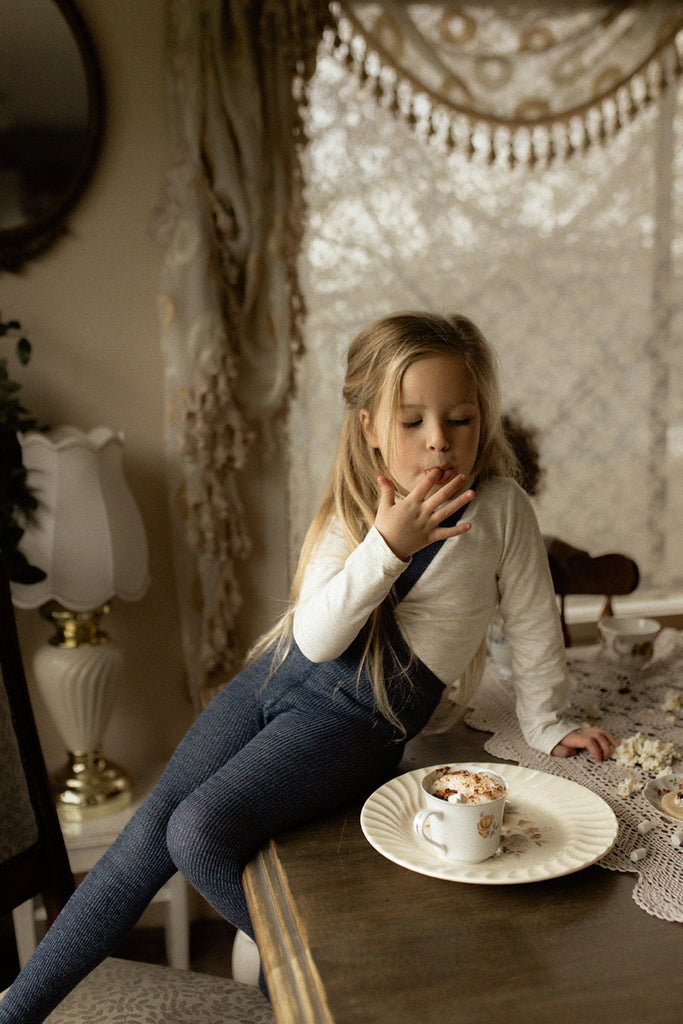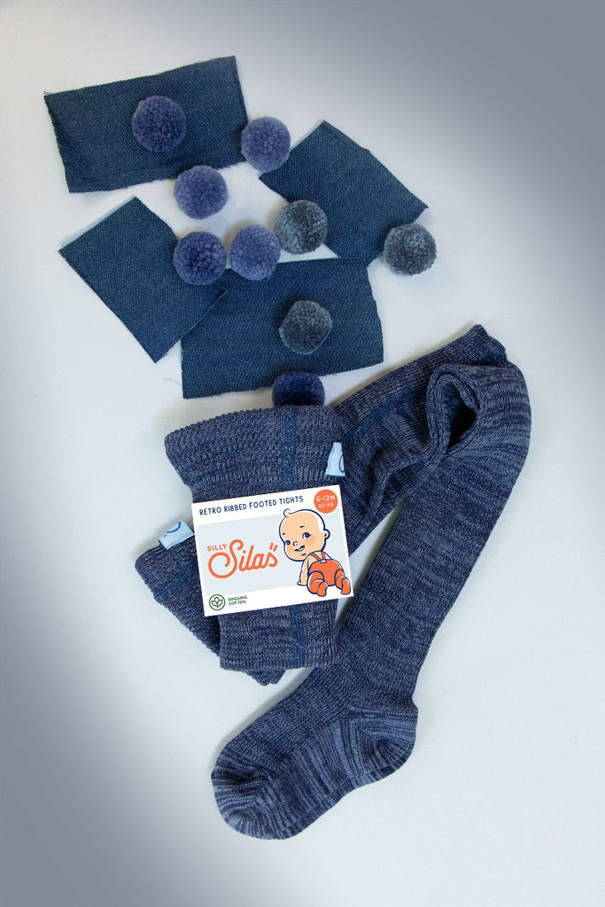 These "Denim" retro ribbed footed tights with braces will keep pace with even the most active babies and toddlers.