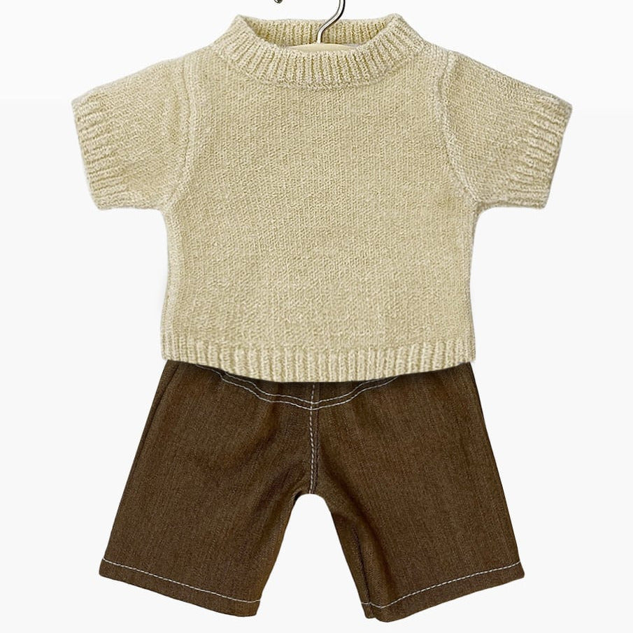 Cream Paula Sweater & Brown Denim Pants Set
