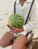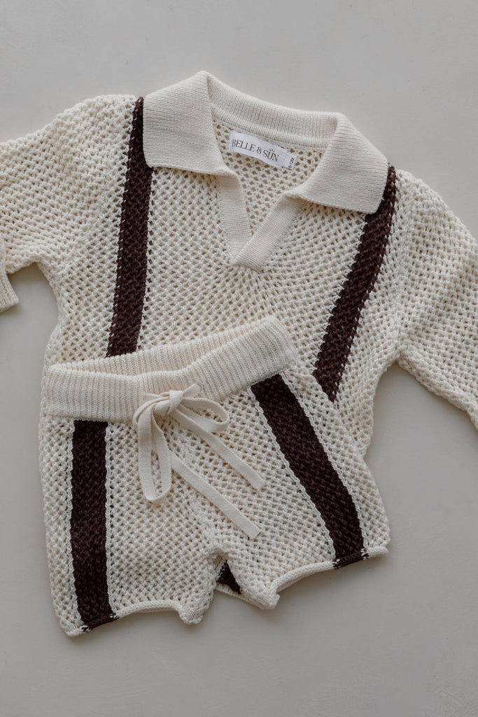 The Crochet Shirt in Coconut. Featuring trendy duo thick stripe at the front of the design. Oversized, gender neutral and relaxed in fit. A statement wardrobe style this Spring Summer. Pair with Crochet Stripe Shorts