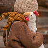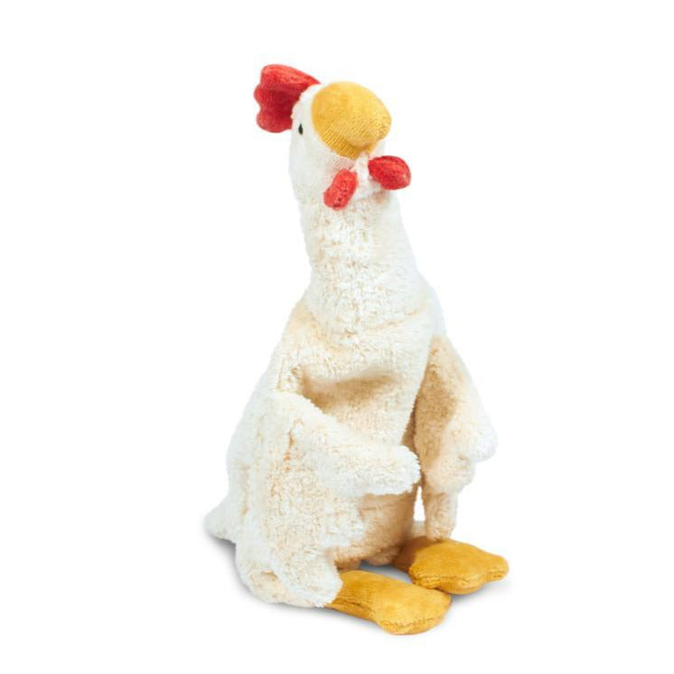 Hello!  I'm the small, white Cuddly Chicken! My belly is filled with a pillow out of cherrystones - you can take this pillow with the zipper out, warm it up in the oven or put it to the freezer to cool special parts of your body. My head and feet are filled with lambswool and my skin is made from cotton.