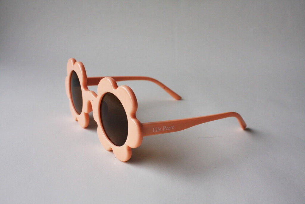 Novelty sunglasses great for dressing up and photo shoots - perfect for the little fashionistas. Frames are a daisy shape with dark lenses. Beautiful orange fizz color.