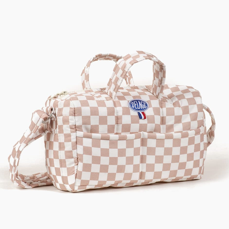 Cotton padded diaper/change bag for Minikane dolls in a cute Pink and White Checkered print. Accessories are NOT included.