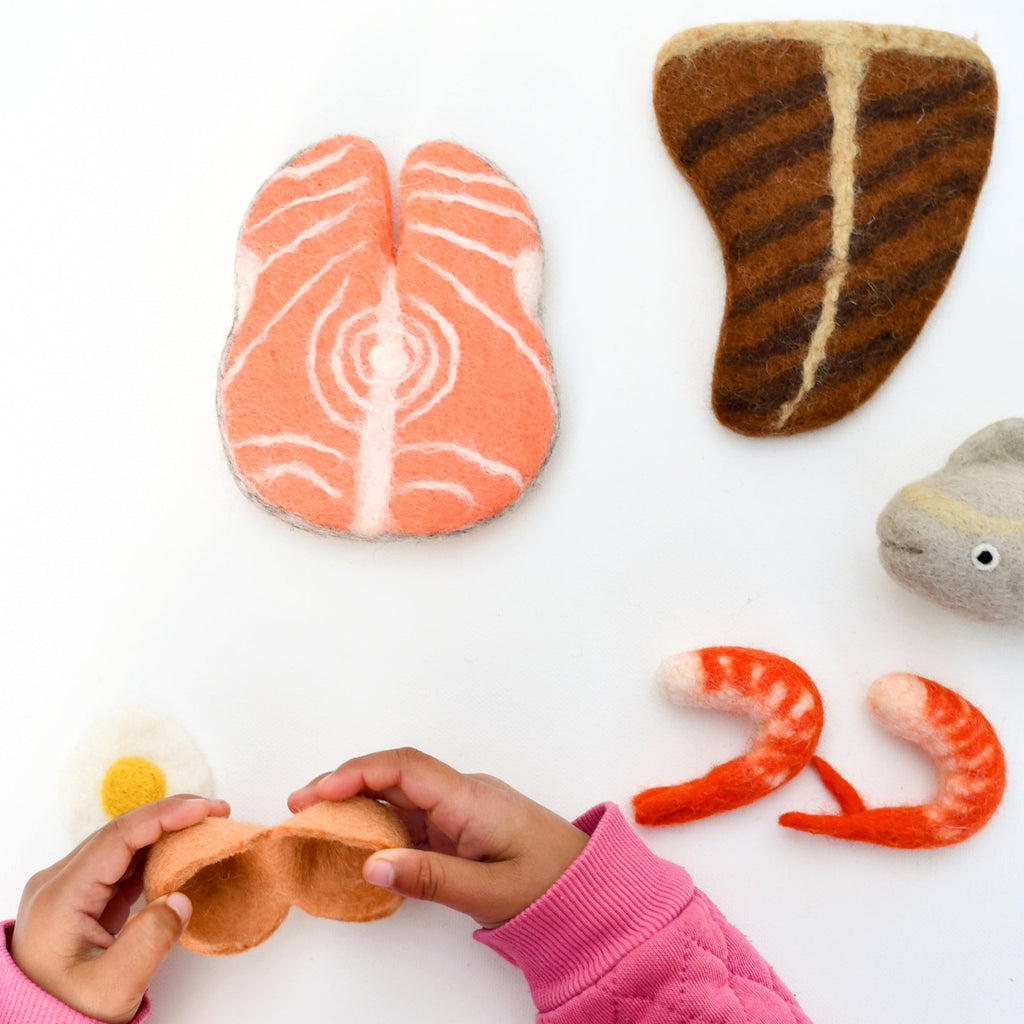 Introduce your children to the magic of food groups with our captivating Protein Collection in Felt Play Food. Handcrafted to resemble real-life favourites, these adorable felt creations bring the essence of essential nutrition to pretend play.
