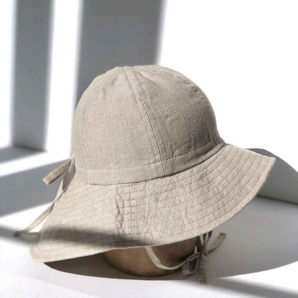This stylish yet super practical fini. floppy hat made from 100% linen is a beautiful light taupe with grey undertones and has an extra wide brim with long back for increased sun protection. Adjustable bow to firm your fit & chin strap to keep in place.