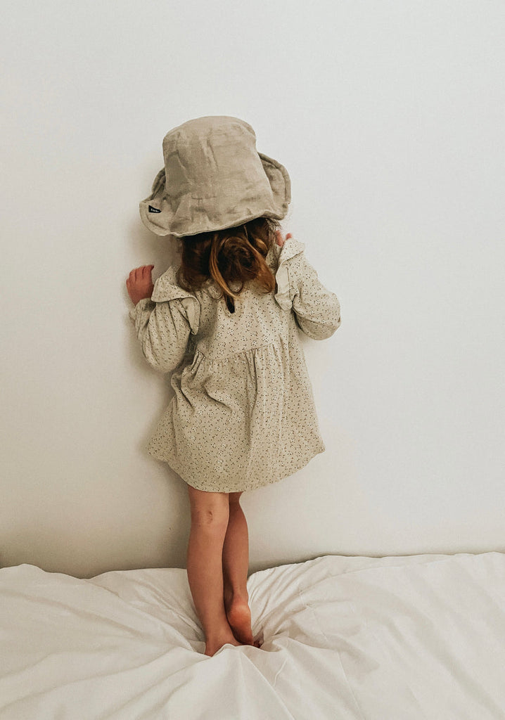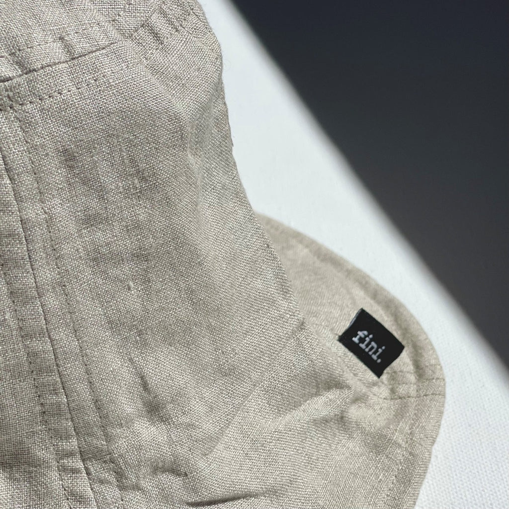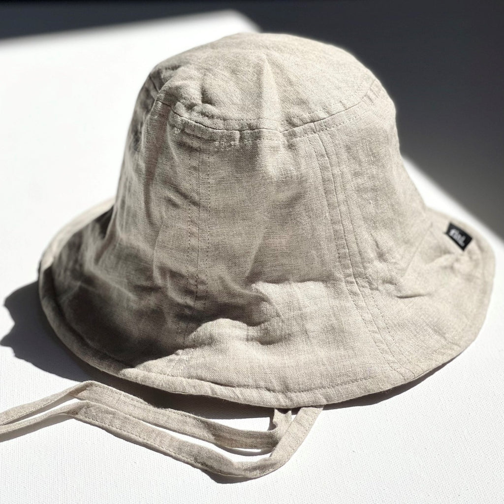 The Fini. Boho Hat in Linen is hand made high quality headwear, gender neutral and finished with a removable chin strap and soft wired brim.