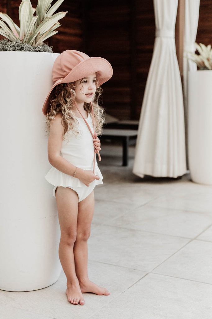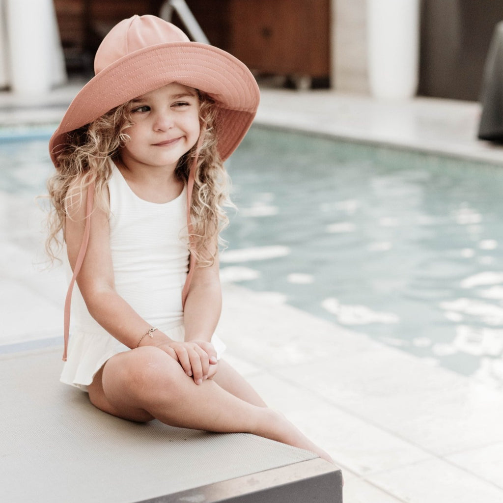 Splash around in style with the fini. swim floppy hat in cocoa.