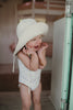 ** Important Note: white swim fabric is not recommended for beach wear, however if you do use white swim for the beach & get sand grains within the fabric, the following care instructions are suggested;