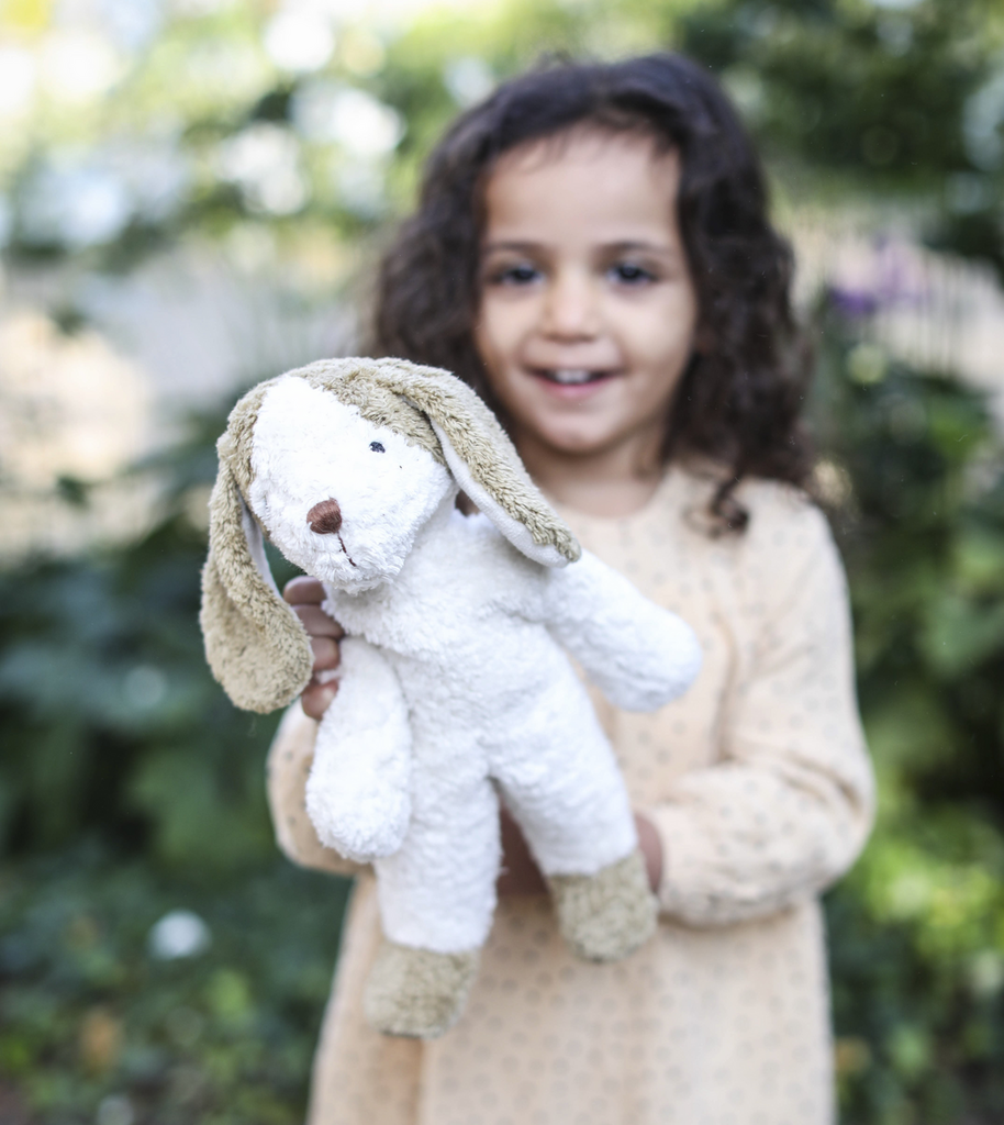 Our small floppy animals; 11.81" (30 cm), are perfect for small children due to their handy size, while older siblings find loyal friends for life in the large floppy animals; 15.75" (40 cm). All floppy animals are made of ecological cotton plush and sheep‘s wool and therefore, they are the ideal toy that can be put into the mouth without hesitation.