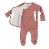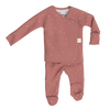 Full coverage footed onesie in with a subtle polka dot print. Designed with hook & loop fastener for ease of skin to skin contact. Elastic waist allows snap free diaper changes.