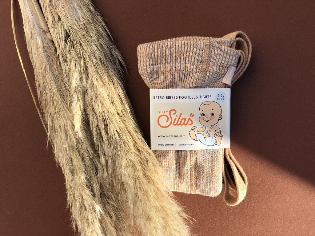 These retro, footless ribbed tights in a lovely silverly brown blend, feature braces that will keep pace with even the most active babies and toddlers. Exceptionally resistant, lusciously soft and made from 100% cotton suitable also for babies with the most sensitive skin. Made with love in the heart of Europe, Czech Republic. Traditionally crafted by people who cherish their work for decades.