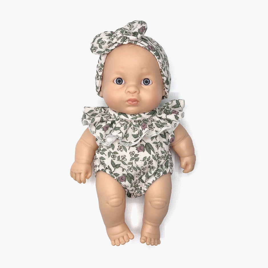 – Sold with her sleeveless Eva Amelie romper set and round bow headband in cotton gauze.