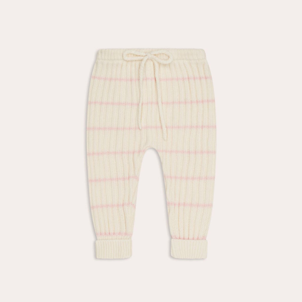 Playdate perfection, the Joey Pants in Pink Stripe are the perfect mixer for your little one’s everyday wardrobe. In two different coloured striped prints, this style is crafted from a ribbed organic cotton knit with an elasticated waist, a functional drawcord and a rolled hem detail.