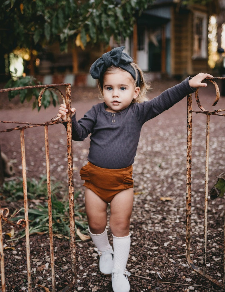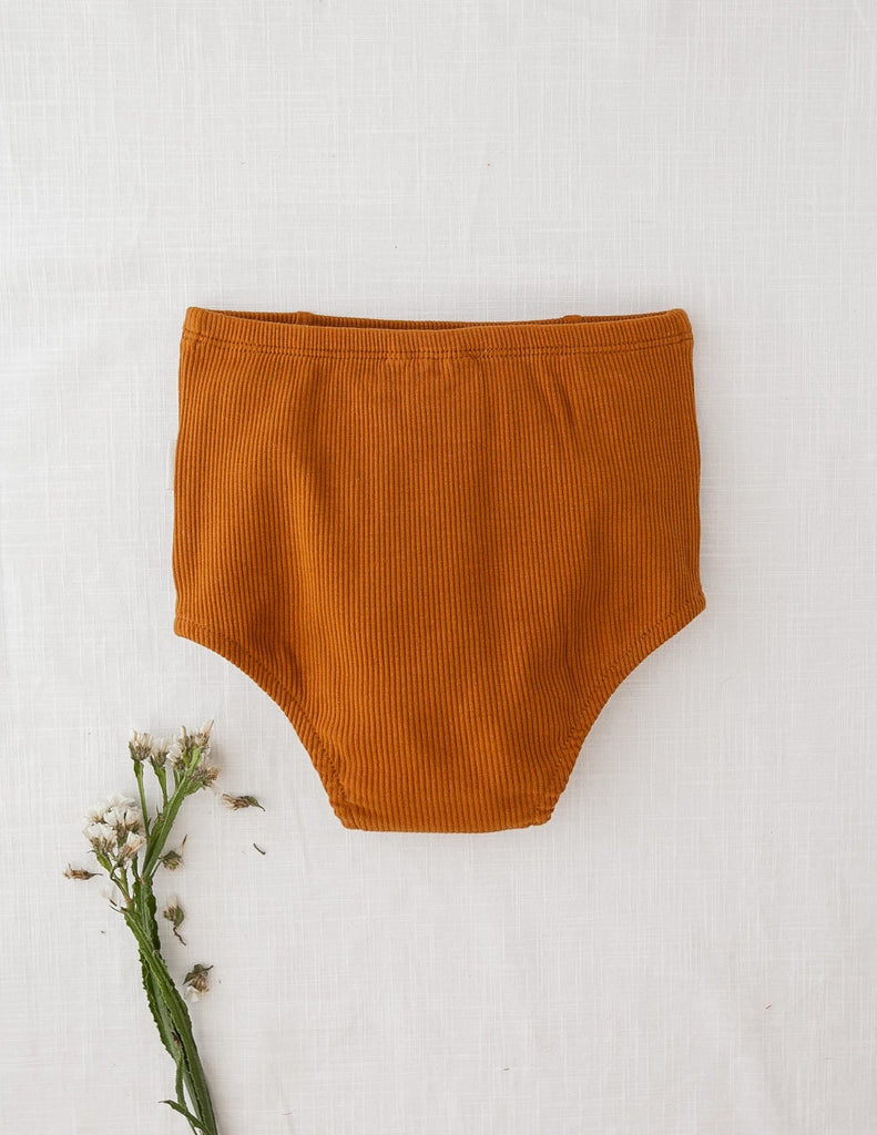 Soft and comfy, these little acorn bloomers are just what your little one needs for pairing with our ribbed Willow tops.
