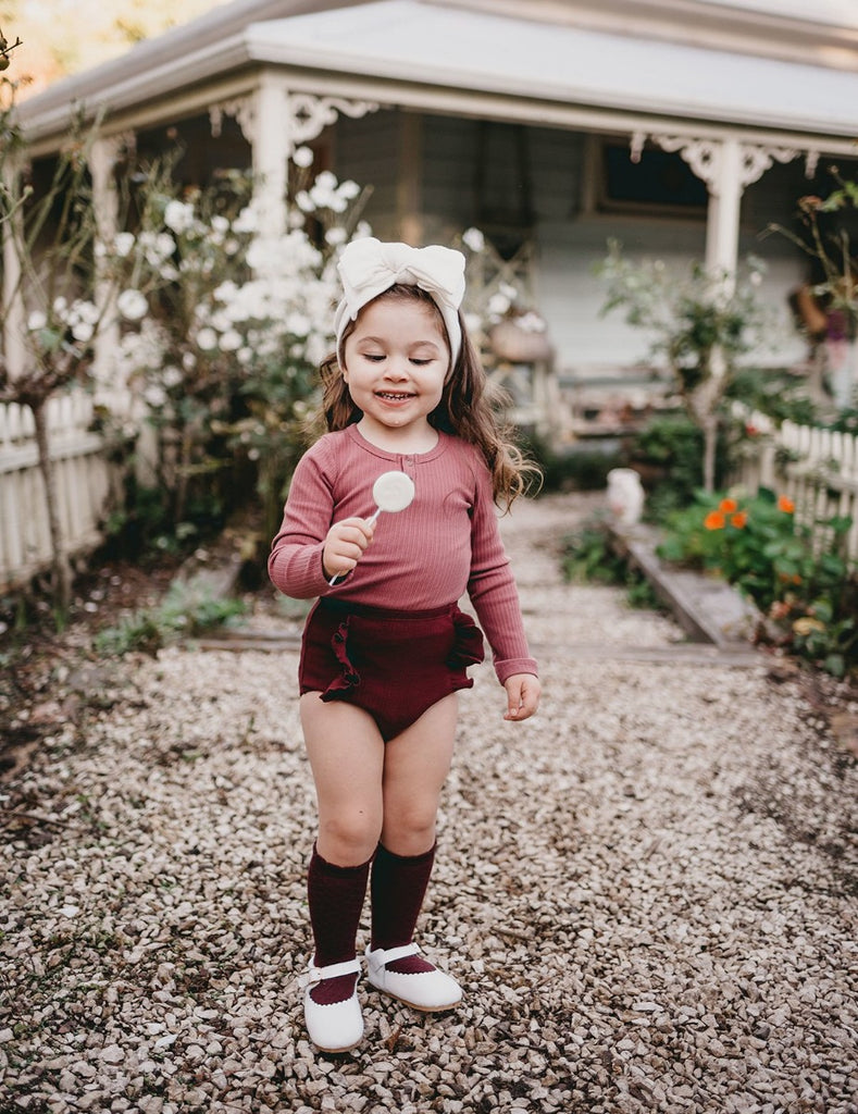Just perfect for all year round styling and easy comfort our garden rose pink Willow long-sleeve tops are a super versatile must-have for every little one's wardrobe.