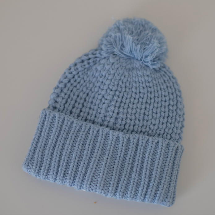 The Zoa chunky knit beanie in blue is the perfect hat to keep those wee heads warm. Its vibrant pairs well with other Sukoo knits.