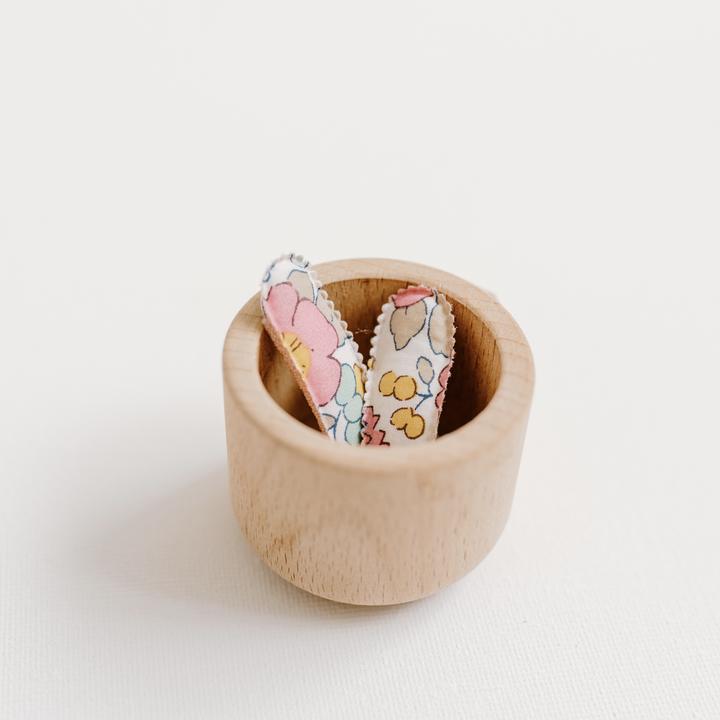 The perfect baby girl's hair clip for accessorizing, these are sold in sets of two timeless hair clips and are finished using a range of Liberty London prints along with a selection of fabrics designed by The Rifle Paper Co.