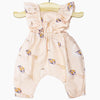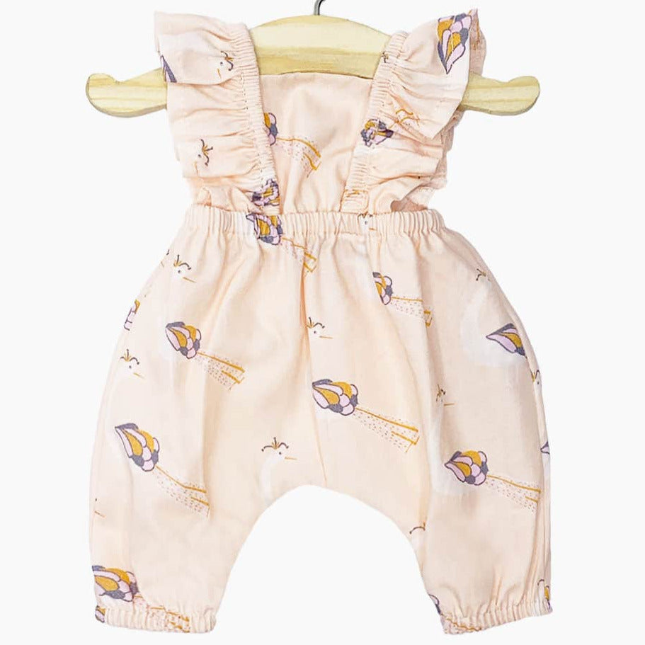 The most adorable jumpsuit for your little one's doll.  Layer it for cooler months or on its own when its warm!  Made from printed cotton in "Pink Peacocks".  Features ruffle sleeves.