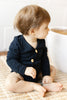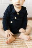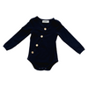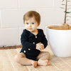 Features 4 functioning wooden buttons down the front with a cross over kimono style bodice. Snaps on the crotch for easy nappy changes are also a must and for that little bit extra we included fold over mittens on the cuffs to protect their little hands! Pairs perfectly with any of our Harem Pants or Shorties!