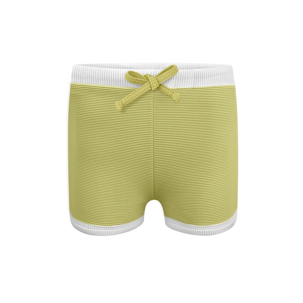 The Mini Rib Surf Short in Avocado is a new favourite addition to our Mini collection inspired by a retro board short, it features contrast rib binds and a drawstring waist for the perfect fit. Crafted from our exclusively developed ribbed lycra in ECONYL® regenerated fibre and fully lined with ECONYL® lycra with a sun protection rating of 50+. Available in size 5-8.