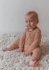 Features a thick, doubled stitched elastic waistband, Drawstring waist, the softest ribbed cotton material and a cute drop crotch!