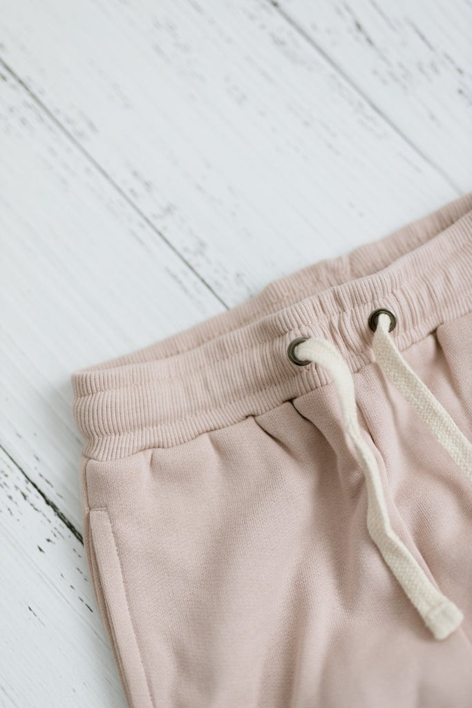 Our Rose Dust Lounge pant is crafted from organic cotton fleece material. Each piece features a fully adjustable drawstring waistband, pockets and elasticated cuffs. Designed for lounging around at home, outdoor adventures and play.