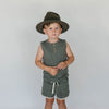 Model is four years old and wears size 2/3 Years for a slimmer fit.