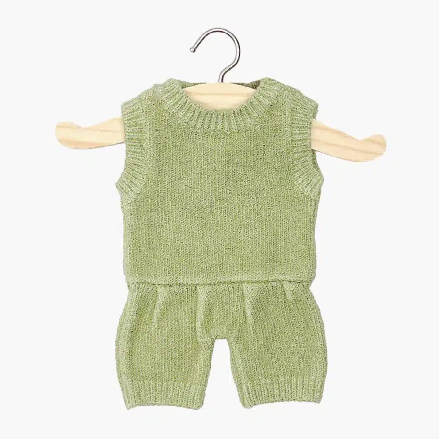 Orlando knit romper in sage green color for 34 and 37cm Minikane Gordis dolls.