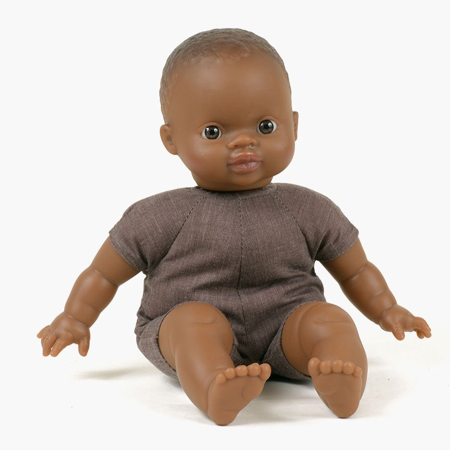 Introducing Oscar; Minikane's newest baby on the block. Featuring chocolate brown eyes and a soft, cuddly body.