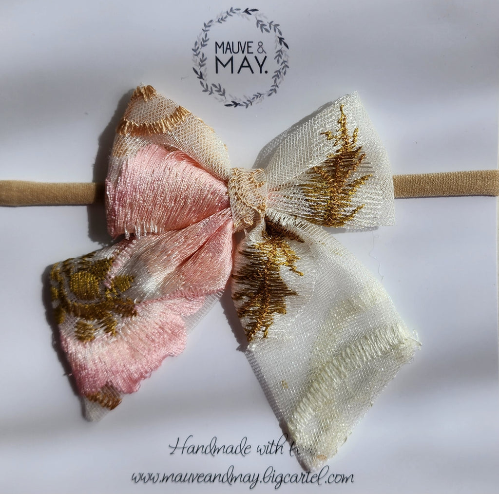 The gorgeous Peony Bow headband is the perfect complement to the Peony Fairy Wings and Wand.  Bow is attached to a soft, nylon headband.  Perfect for newborns.