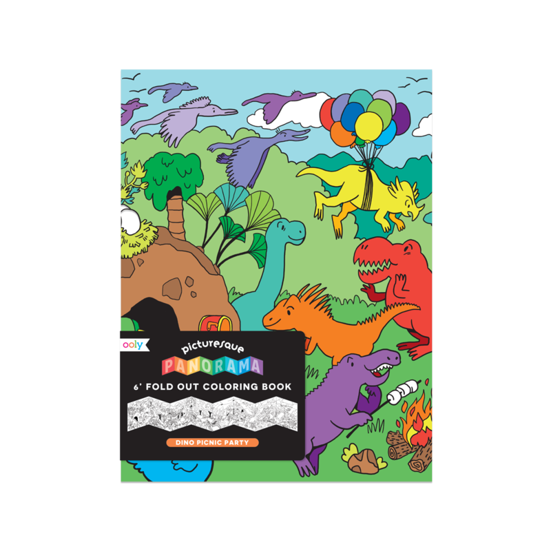 Super cute dinos and friends really throw out a spread at this picnic! Six feet of dinosaur coloring excitement is ready to unfold in a really big coloring book. This big hardback coloring book houses a coloring page that measures 12 inches by 72 inches for hours of coloring fun. Simply unfold the coloring page for a continuous scene that can be colored with colored pencils, colored pens, markers and more!
