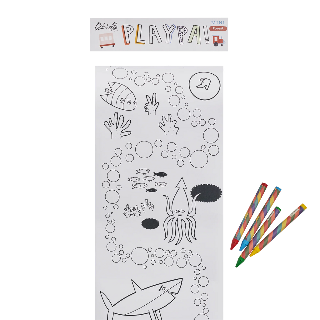 Designed to fit in a carry bag, the compact 5.7” box includes a 6.5 ft roll printed with our exclusive Ocean design and four crayons. A revolutionary concept in creative play, there are sea creatures, coral forests, and a bubble trail for little artists to color, paint, and imagine their own adventure – all while on the go!