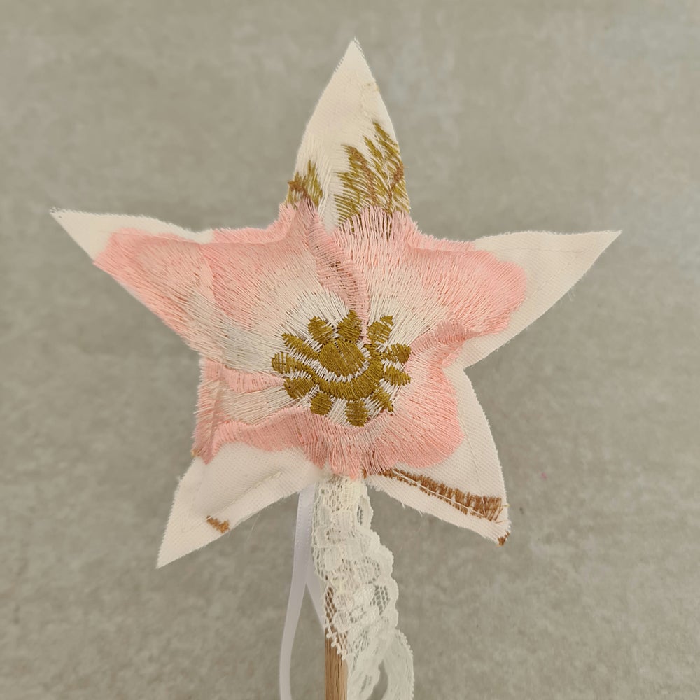 Our beautiful, unique handmade peony wands are the perfect add on to our peony wings and are made from embroidery fabric.  Please note the placement of the embroidery will vary.