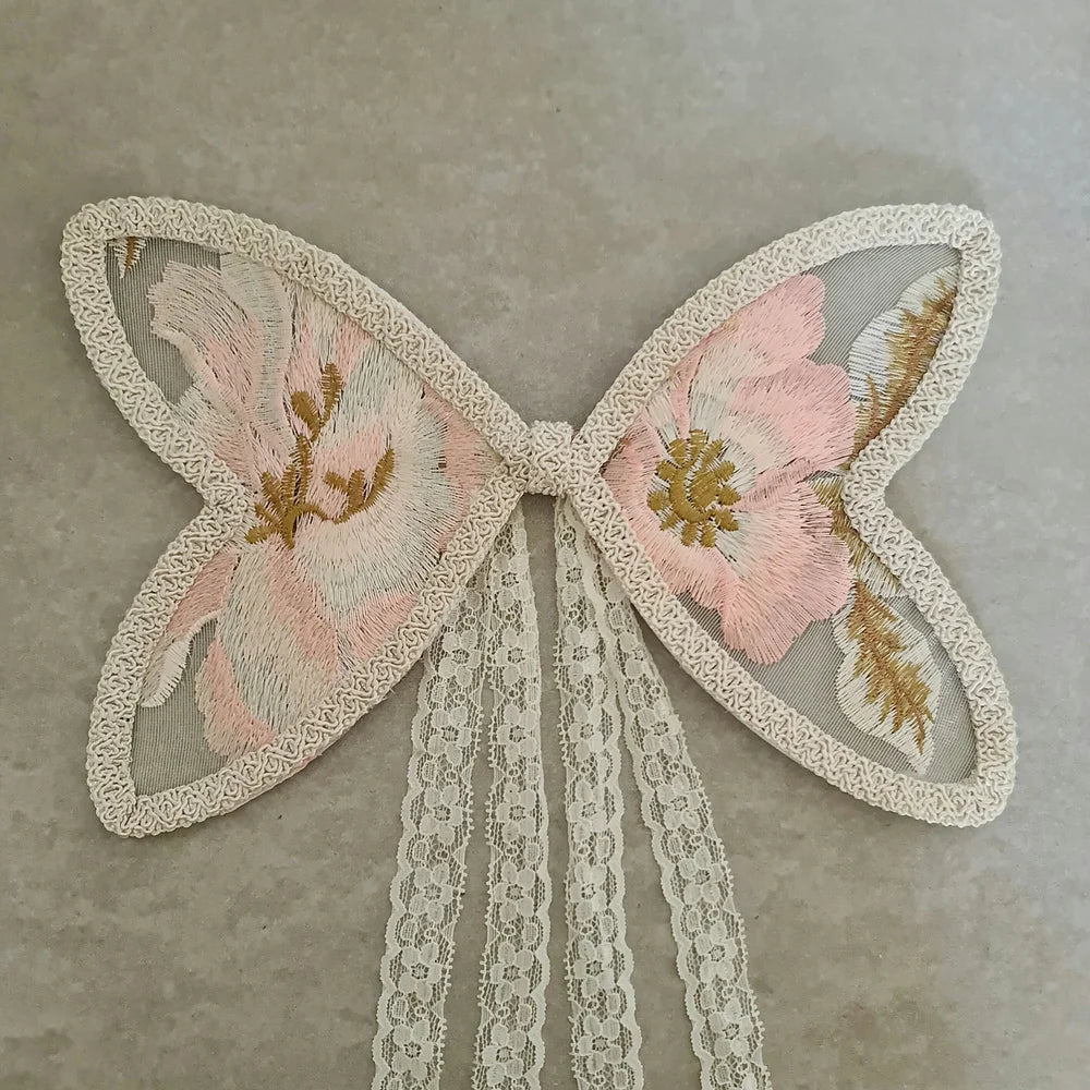 Stunning, handmade Peony fairy wings; perfect for dressing up, photo calls or simply; just because! The size small is perfect for those beautiful baby photos and has delicate pink floral embroidery.