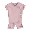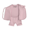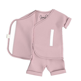 Full coverage short sleeve, short leg, in Peony, designed with hook & loop fastener for ease of skin to skin contact. Elastic waist allows snap free diaper changes.