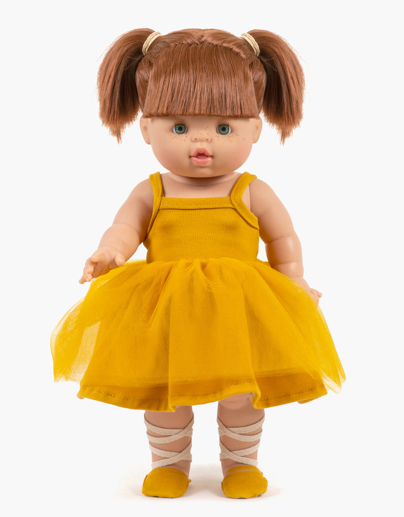 Beautiful little tutu dress for your little one's doll to twirl away in. Available in a vibrant Mustard Amber color.