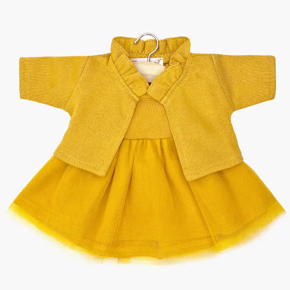 Beautiful little Rosella tutu dress for your little one's doll to twirl away in.  Available in an "Amber" color with matching Claudia Cardigan.